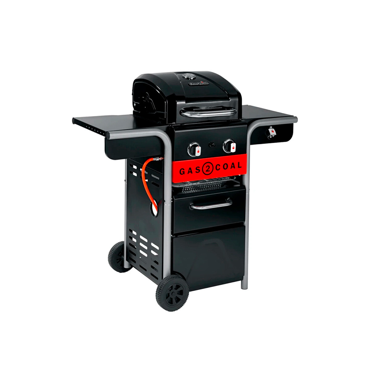 El parrillero Char-Broil Gas2Coal es una barbacoa híbrida. Es una barbacoa de gas de 2 quemadores que se puede convertir fácilmente en una barbacoa de carbón. Así que le permite disfrutar de la comodidad y rapidez del gas o del autentico sabor de cocinar con carbón.